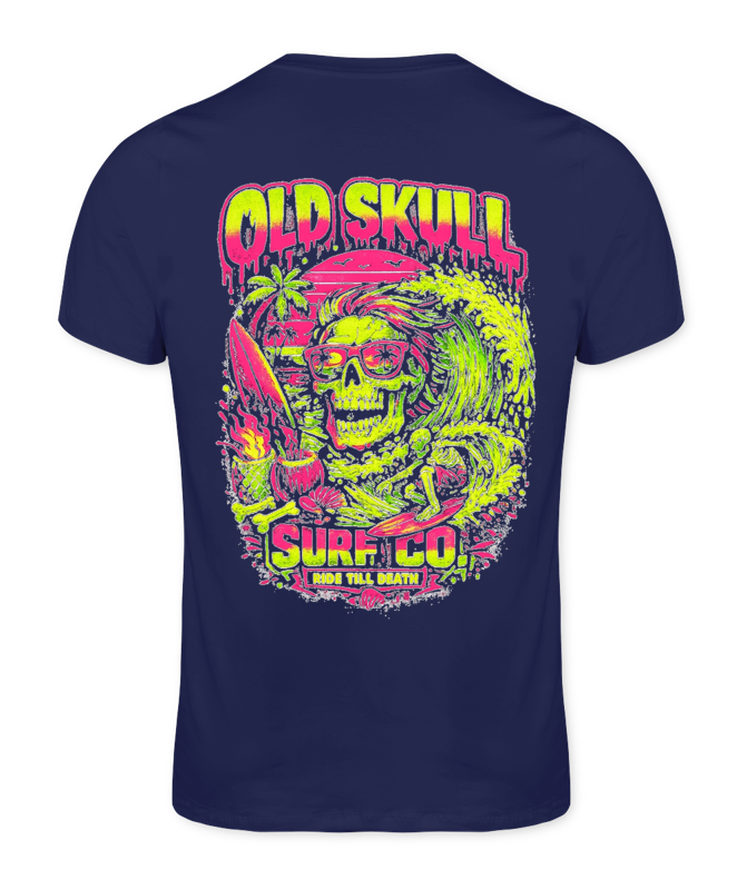 Neon Wave Rider é uma estampa que representa a essência da Old Skull Surf Company: liberdade, atitude e a energia das ondas. Com cores neon vibrantes e um visual ousado, a arte mistura o universo do surf com um estilo irreverente e tropical.