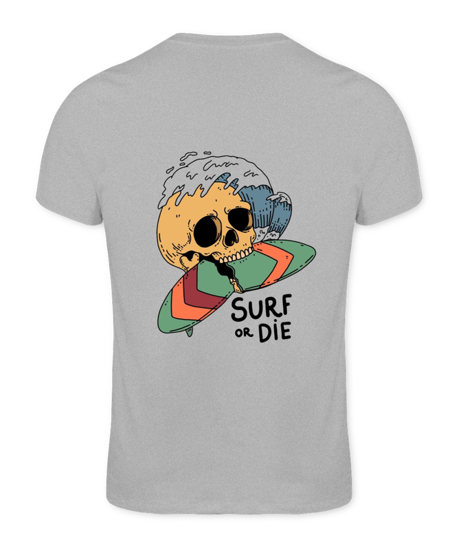 A Surf or Die é para quem vive o surf sem concessões. A estampa une caveira, prancha e onda em um visual irreverente e autêntico, representando atitude, liberdade e o espÃrito selvagem do mar.
