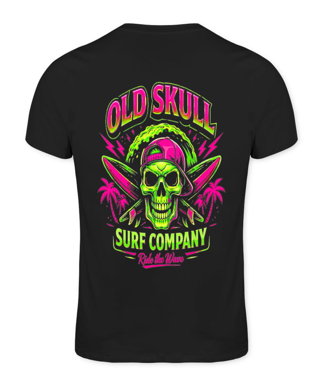 A Old Skull Neon Wave Tee traz a energia vibrante do surf em uma estampa neon marcante e cheia de atitude. Inspirada no estilo retrô das praias e na cultura surf/skate, a camiseta combina cores fortes e design ousado que destacam o espÃrito livre da Old Skull Surf Company.